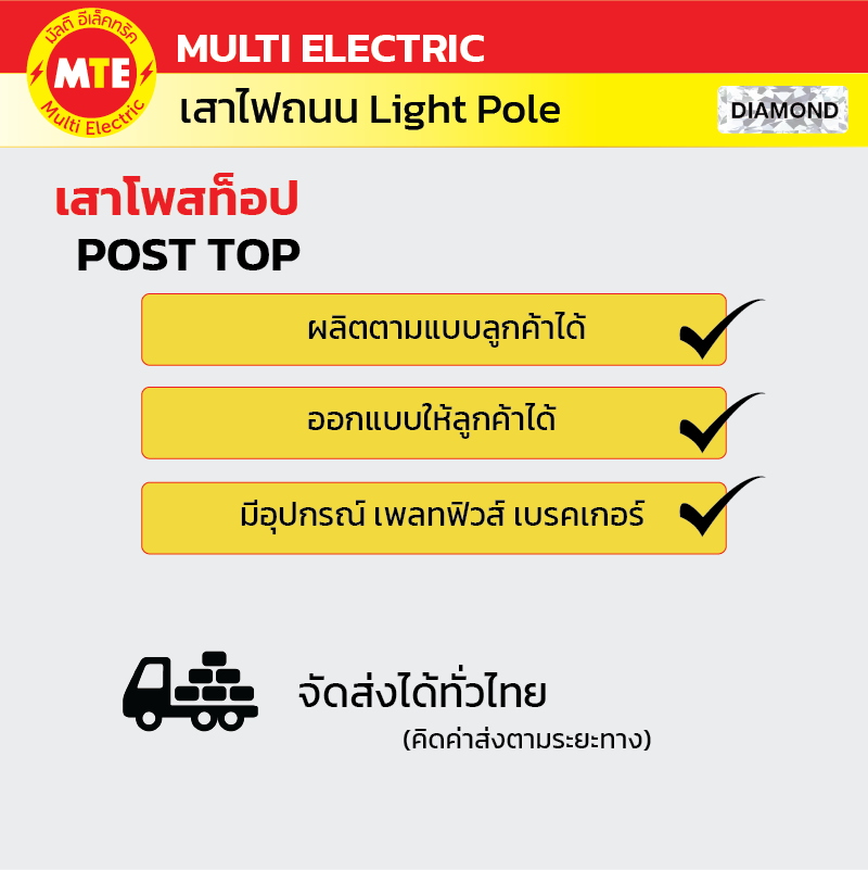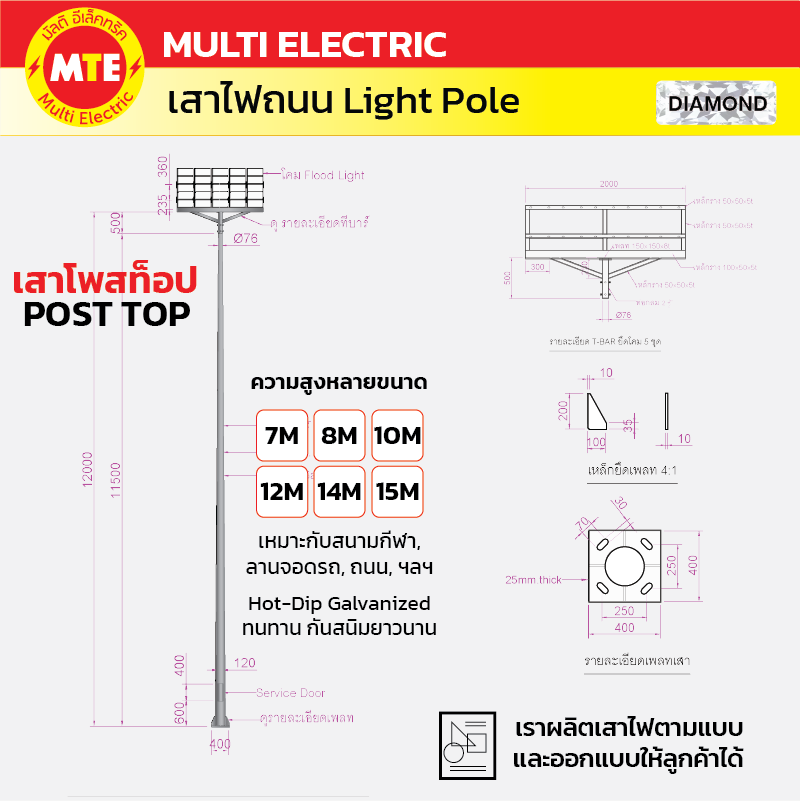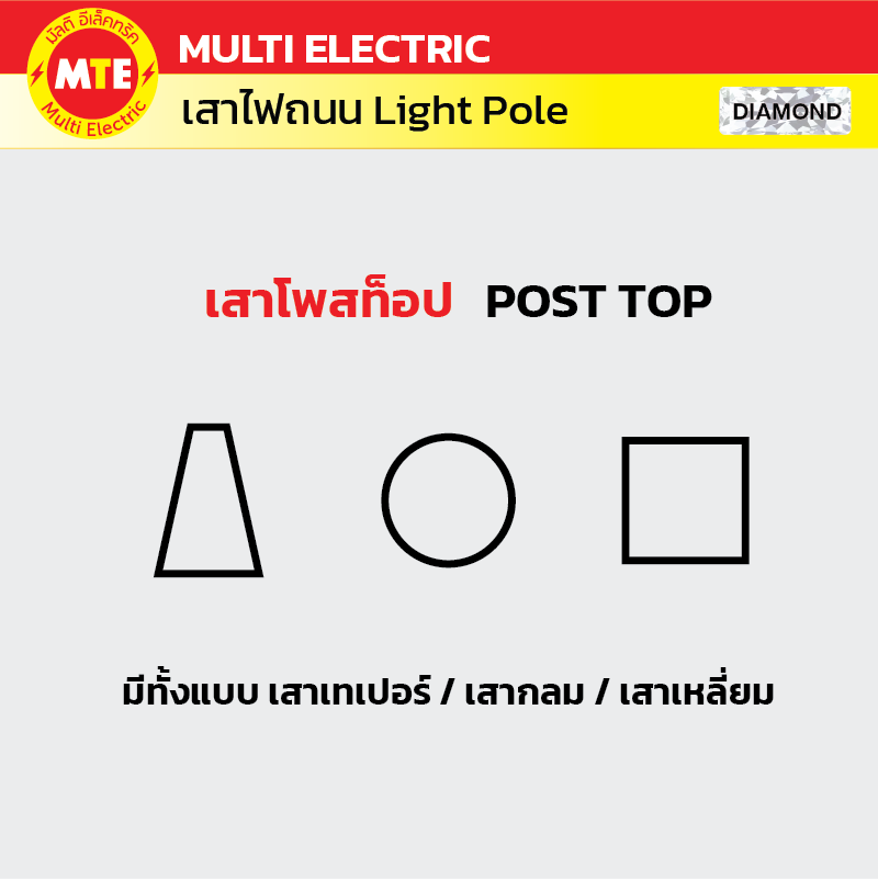 เสาโพสท็อป 7 เมตร – 15 เมตร หรือตามแบบลูกค้า DIAMOND Series (POST TOP POLE ) ชุบกัลวาไนซ์ มีทั้งแบบเทเปอร์ กลม เหลี่ยม