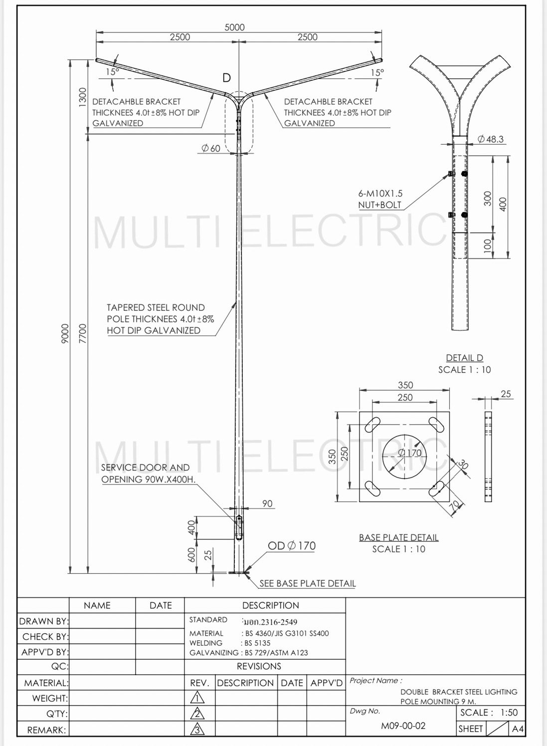 เสาไฟถนน เทเปอร์ กิ่งคู่ 9 เมตร ( Double-Bracket Lighting Pole 9 meters )