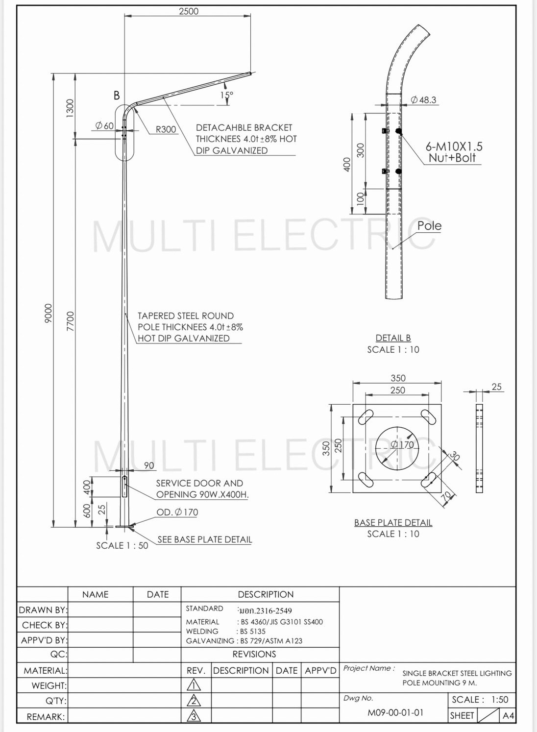 •  เสาไฟทางหลวงได้รับ มอก. 2316-2549: มาตรฐานเสาเหล็กกล้าชุบสังกะสีสำหรับไฟฟ้าแสงสว่าง