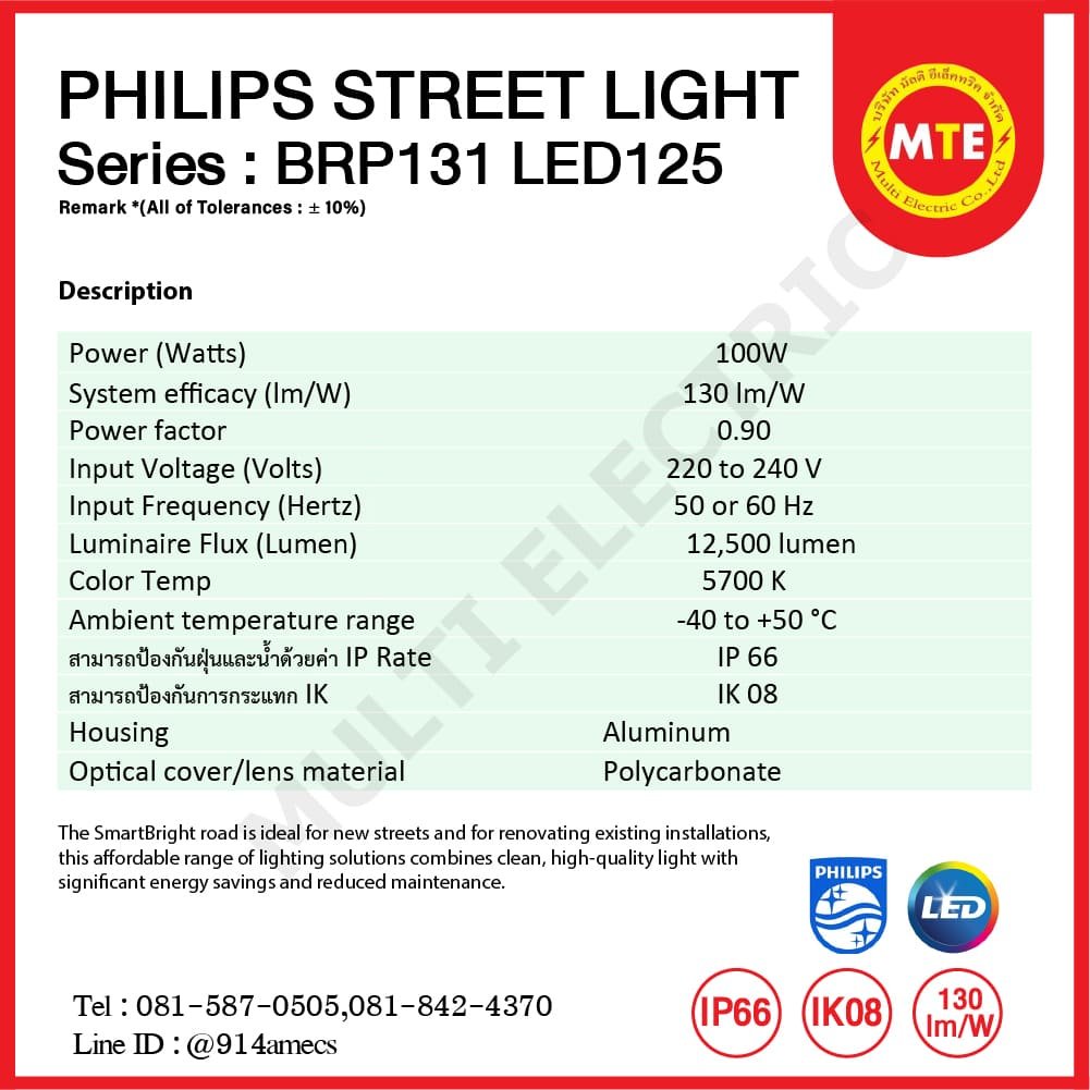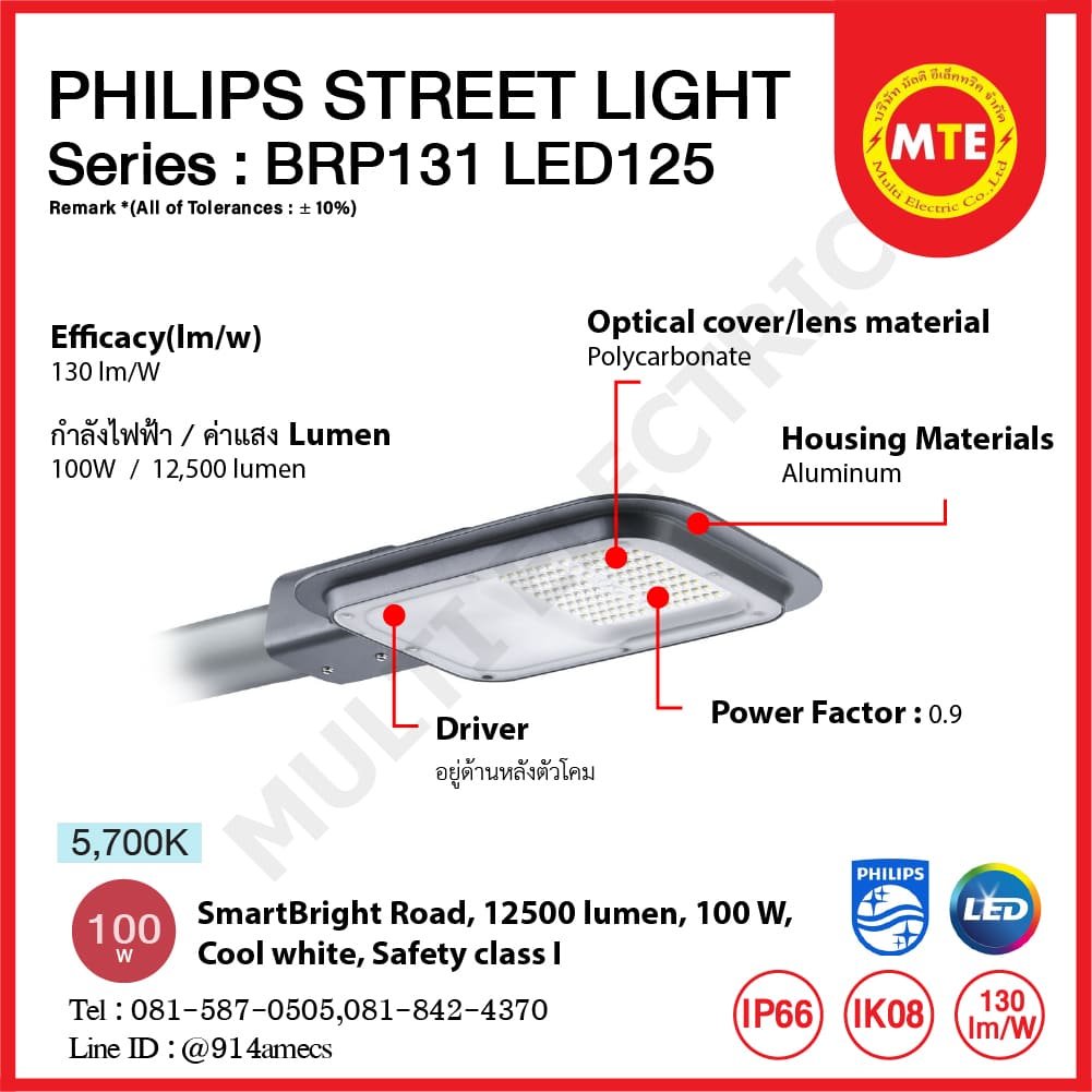 ความสว่าง Luminaire Flux (Lumen) : 12,500 lumen