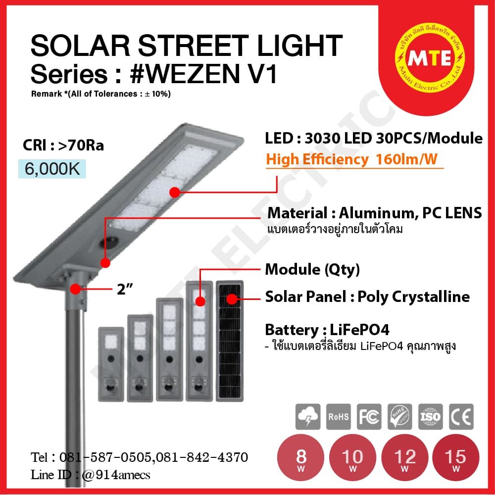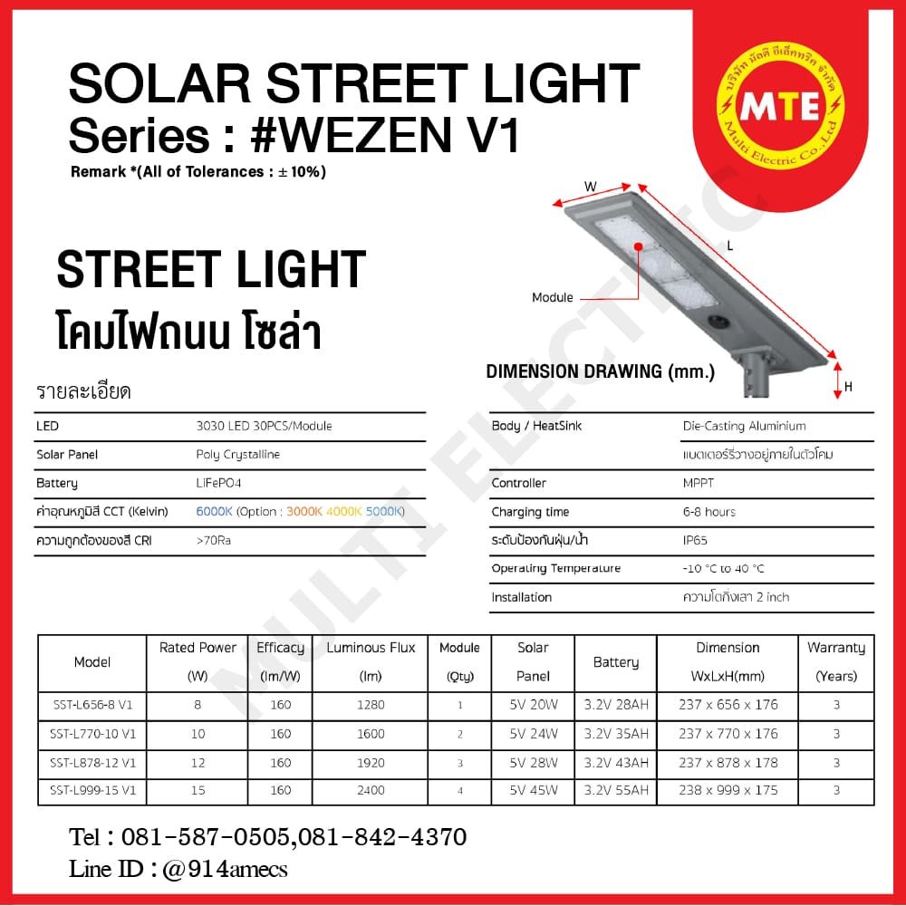 Solar StreetLight โคมไฟถนนโซล่าเซลล์ รุ่น #Wezen V1 แบบ All-in-one